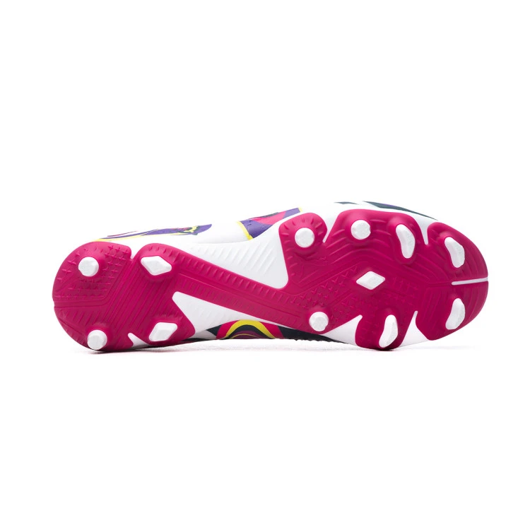 Bota de fútbol Puma Future Match FG/AG para niños. Botas sintéticas para utilizar en campos de hierba artificial y hierba natural. Botas de gama baja en color White-Fluor Yellow.